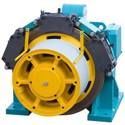 - Accionamiento sincrono del ascensor con sistema de freno, polea de tracción, sistema de medición (codificador)